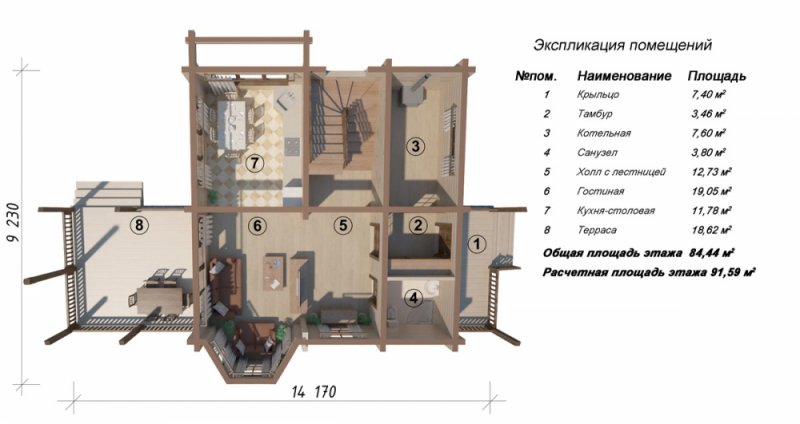 Проект "Далтон", профилированный брус, 129.38 кв.м.
