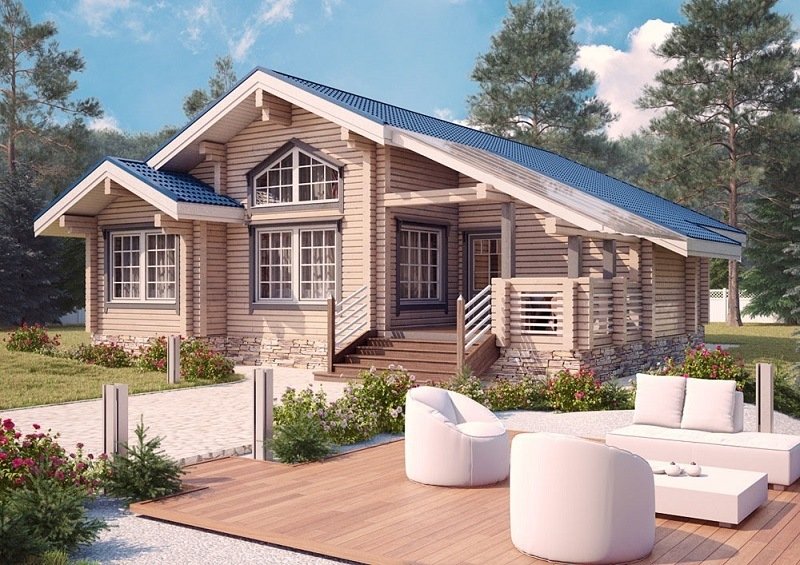 Проект "Аспорина " - отличный одноэтажный дом для постоянного жилья из профилированного бруса с террасой. Площадь дома 123.7 кв.м. с размерами 11*11.