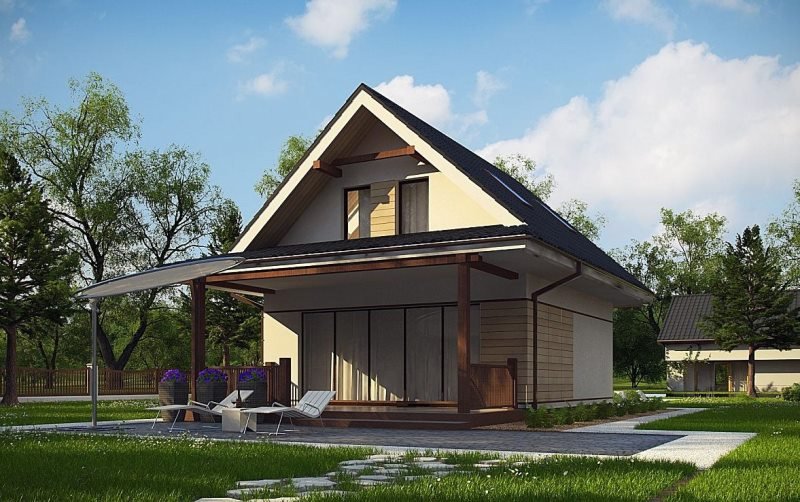 Проект "Дженни " - идеальный двухэтажный дом для постоянного жилья из газоблока с террасой. Площадь дома 69.8 кв.м. с размерами 7 на 7.