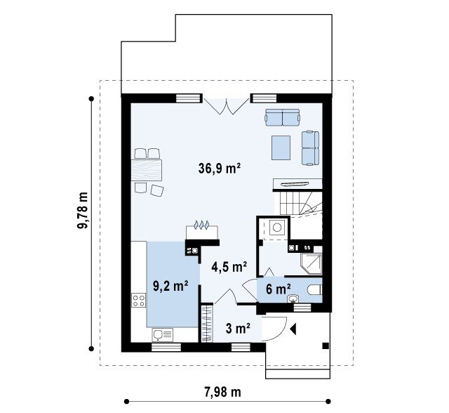 Проект "Ромильда " - хороший двухэтажный дом для постоянного проживания из газоблока с балконом, с террасой. Площадь строения 105.2 кв.м. с размерами 7 на 9.