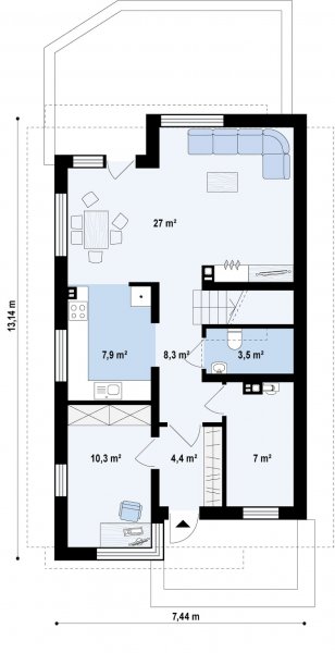 Проект "Рима " - прекрасный двухэтажный дом для постоянного жилья из газоблока с балконом, с террасой. Площадь строения 110.5 кв.м. с размерами 7x13.
