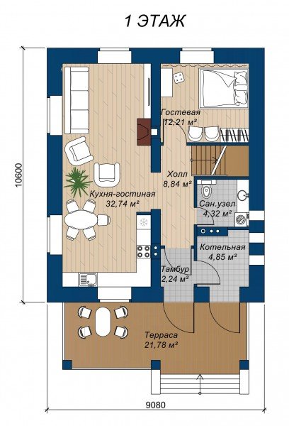 Проект "Автонома " - идеальный двухэтажный дом для постоянного жилья из силикатных блоков с террасой. Площадь дома 148 кв.м. с размерами 9x10.