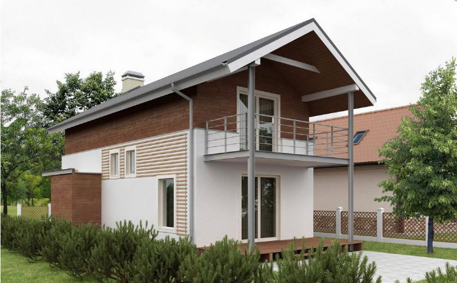 Проект "Проект ГБД-24" - красивый двухэтажный дом для постоянного проживания из газоблока с балконом. Площадь дома 121.8 кв.м. с размерами 7 на 12.