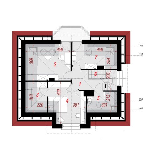 • Наружные несущие стены в 1/2 блока, толщиной 300мм. с теплоизоляцией 30мм. (Размеры стандартного газобетонного блока 625х300х250);
