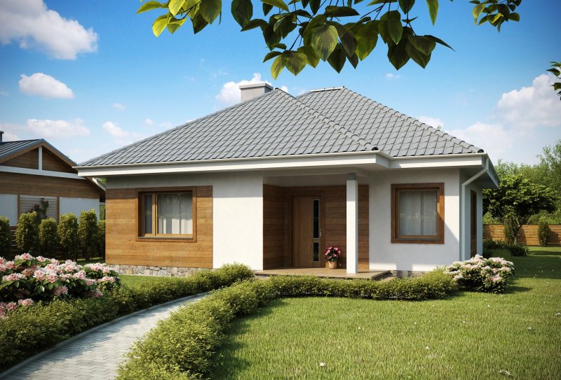 Проект "Дульсинея " - красивый одноэтажный дом для постоянного жилья из газоблока с террасой. Площадь дома 83.8 кв.м. с размерами 10 на 10.