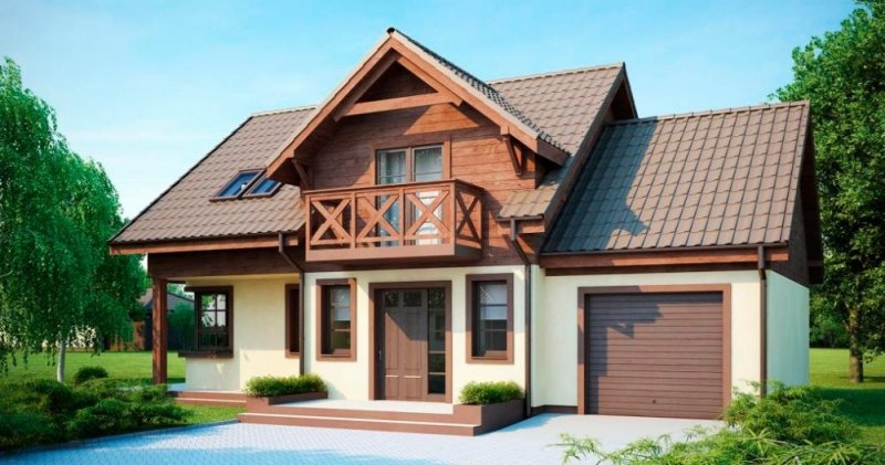 Проект "Проект КД-104" - хороший двухэтажный дом для постоянного жилья каркасных с балконом, с гаражом, с террасой. Площадь дома 120 кв.м. с размерами 13*8.