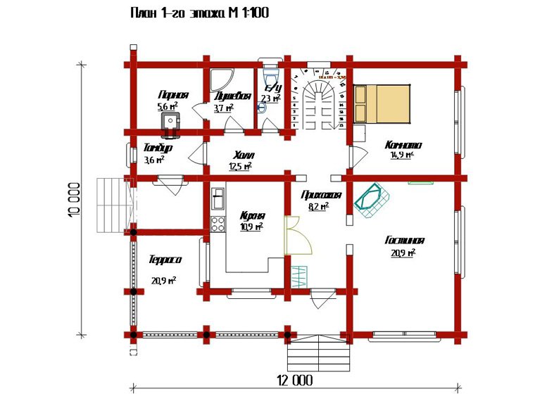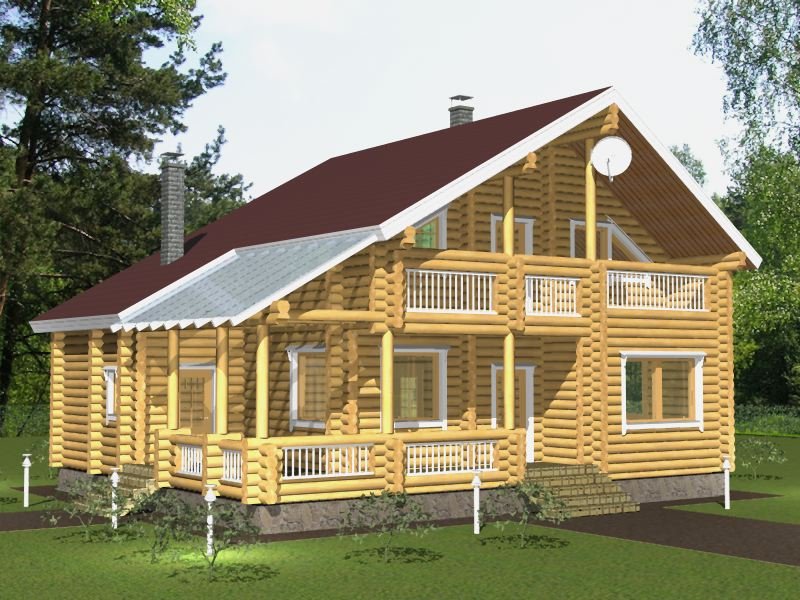 Проект "Проект ОБД-175" - прекрасный двухэтажный дом для постоянного жилья из оцилиндрованного бревна с балконом, с террасой, с баней. Площадь строения 164.54 кв.м. с размерами 12x10.
