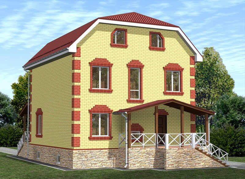 Проект "Долгопрудный" - отличный трехэтажный дом для постоянного жилья из силикатных блоков с террасой, с баней. Площадь дома 246.67 кв.м. с размерами 9*15.