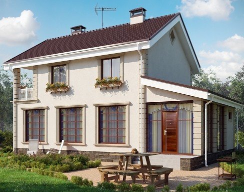 Проект "Бертольда " - идеальный двухэтажный дом для постоянного проживания из газоблока с балконом, с верандой. Площадь бани 138.65 кв.м. с размерами 14x8.