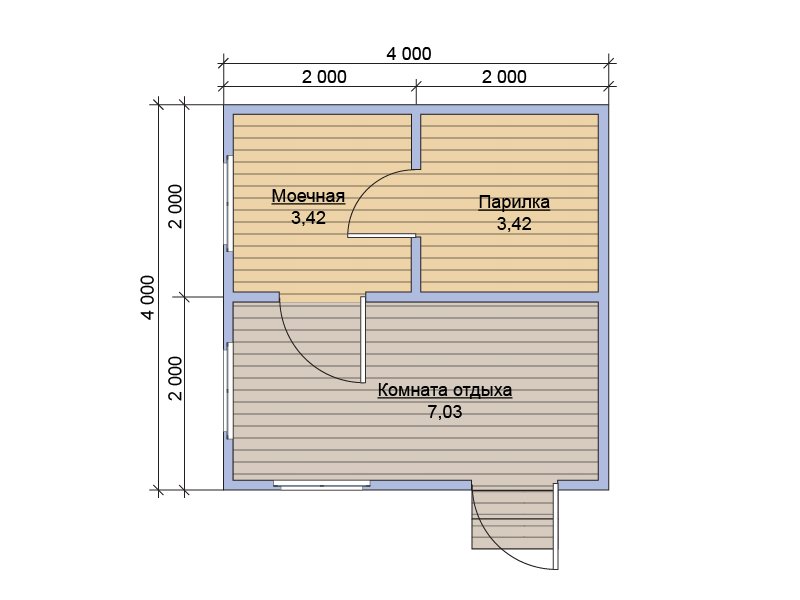 Проект "Проект БН-3407" - отличная одноэтажный баня каркасных. Площадь бани 13.87 кв.м. с размерами 4 на 4.
