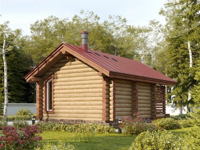 Проект "Мальмквиста " - красивая одноэтажный парная из оцилиндрованного бревна. Площадь бани 24.8 кв.м. с размерами 6*4.