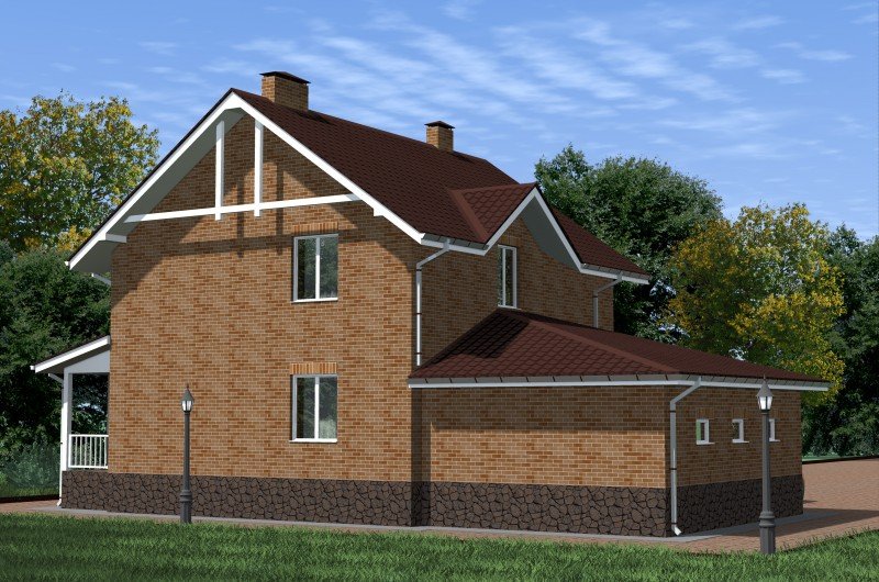 Проект "Рутвен" - идеальный двухэтажный дом для постоянного жилья из газоблока с гаражом, с террасой. Площадь строения 169.78 кв.м. с размерами 14*10.
