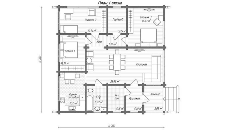 Проект "Проект 512-68", клееный брус, 117.11 кв.м.