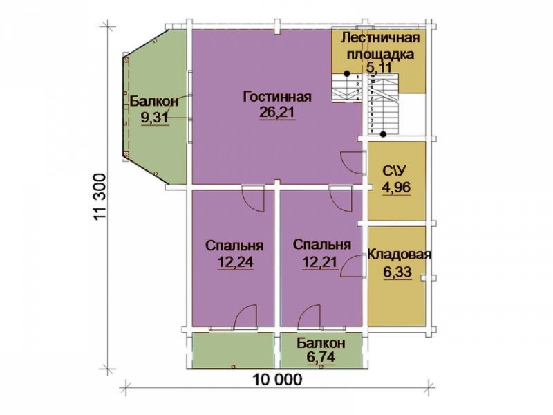 Проект "Метте " - хороший двухэтажный дом для постоянного жилья из клееного бруса с балконом, с гаражом. Площадь строения 177.71 кв.м. с размерами 13*11.