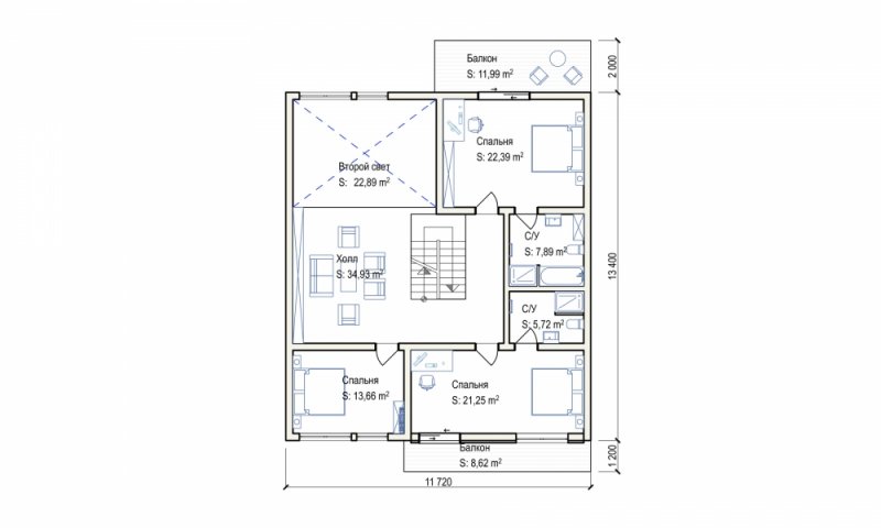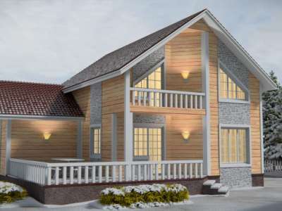 Проект " Кибела " - отличный двухэтажный дом для постоянного проживания из клееного бруса с балконом, с гаражом, с террасой. Площадь дома 366.01 кв.м. с размерами 22*13.