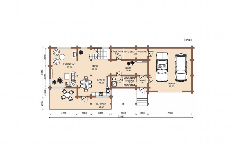 Проект "Проект 618-68", рубленое бревно, 284.94 кв.м.