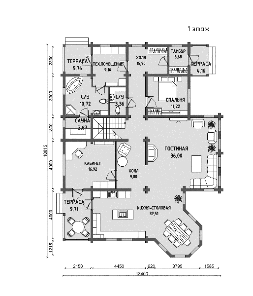 Проект "Проект 634-68", двойной брус, 295.21 кв.м.