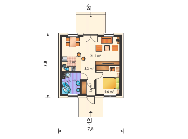 Проект "Фтия " - хороший одноэтажный дом для постоянного проживания из кирпича. Площадь дома 46.6 кв.м. с размерами 7x7.