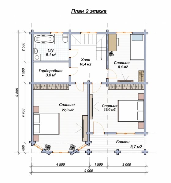 Проект "Волков " - прекрасный двухэтажный дом для постоянного проживания из профилированного бруса с балконом, с террасой. Площадь строения 143.52 кв.м. с размерами 11 на 9.