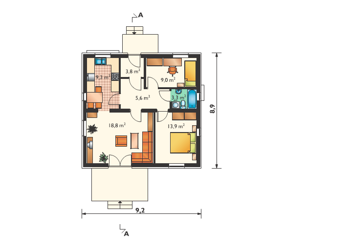 Проект "Баумея " - отличный одноэтажный дом для постоянного проживания из кирпича. Площадь строения 63.7 кв.м. с размерами 9x8.
