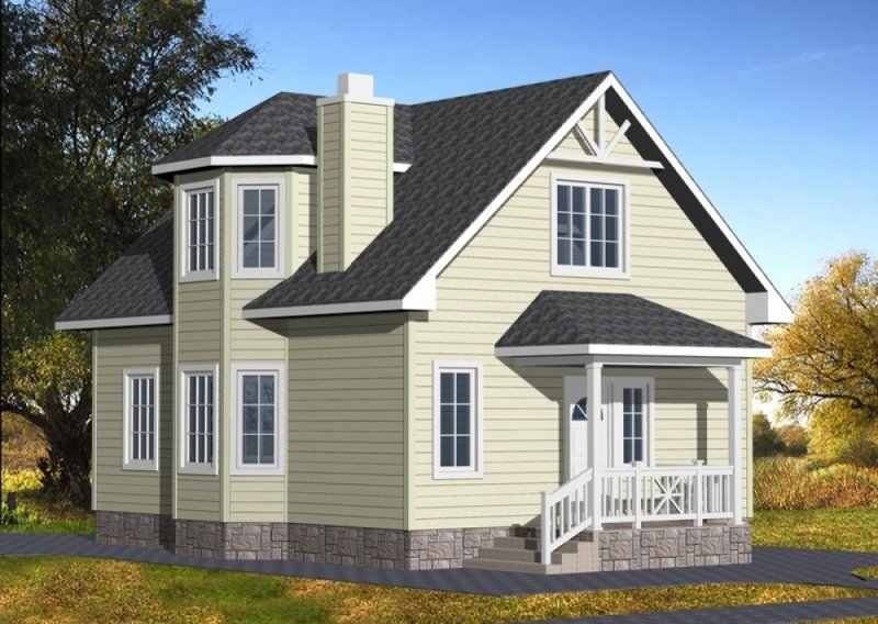 Проект "Портленд" - отличный двухэтажный дом для постоянного проживания каркасных с эркером. Площадь строения 68.2 кв.м. с размерами 7*11.