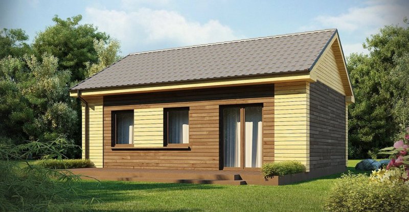 Проект "Гаммония " - отличный одноэтажный дом для постоянного проживания из кирпича. Площадь строения 50.7 кв.м. с размерами 9*7.