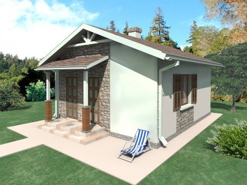 Проект "Май " - красивый одноэтажный дом для постоянного проживания из кирпича. Площадь строения 34.56 кв.м. с размерами 6*5.