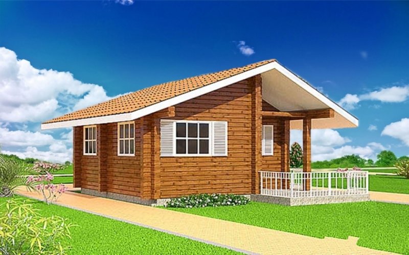 Проект "Ани " - отличный одноэтажный дом для постоянного проживания из профилированного бруса с террасой. Площадь дома 46.75 кв.м. с размерами 7x8.
