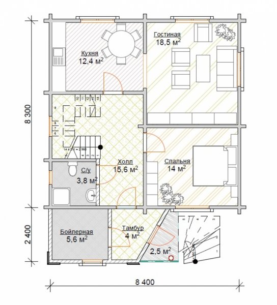 Проект "Вельде", профилированный брус, 132.8 кв.м.